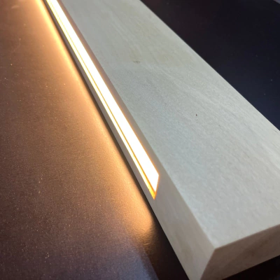 Lámpara lineal hecha en madera Loro blanco macizo con luz led. Tiene un trabajo 100% artesanal ideal para ambientes que necesiten una sensacion de cálidez, comodidad. Es adecuada para living, habitaciones, comedor, oficinas, espacios de coworking.